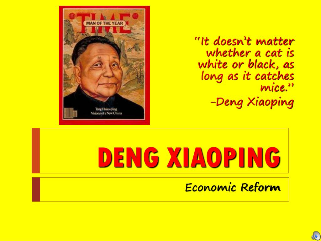 ကွန်မြူနစ် နိုင်ငံရေး စနစ် ဖြစ်ပေမယ့်လည်း စီးပွားရေး မှာ တံခါးဖွင့်ဝါဒ ကျင့်သုံးခဲ့သည် က တရုတ်နိုင်ငံ ကို ကမ္ဘာကြီး နှင့် အဆက်အသွယ်တွေ ရှိလာခဲ့ပြီး စီးပွားရေး ဖွံ့ဖြိုး တိုးတက်လာခဲ့သည်။
